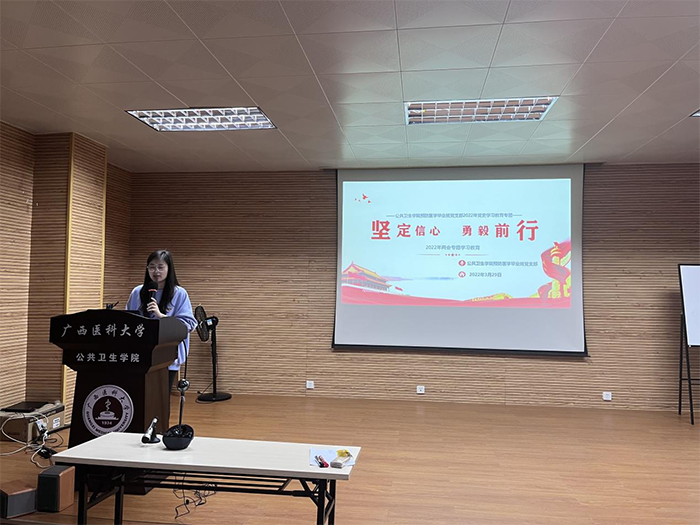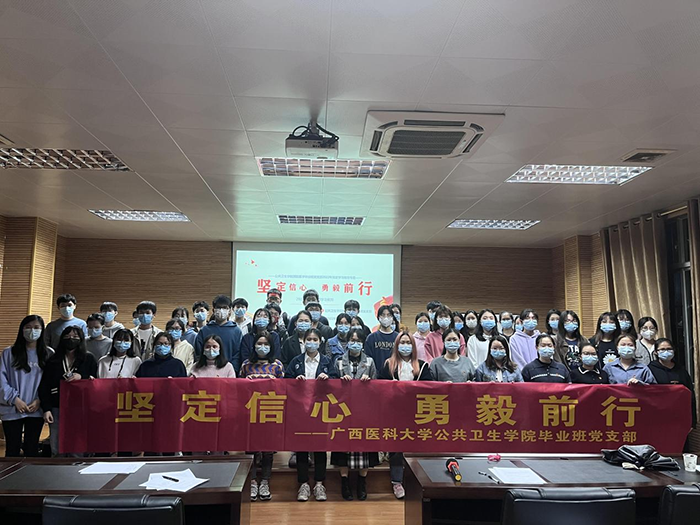 当前位置:员工工作为深入贯彻学习2022年全国“两会”精神,增强党员同志们的使命感和责任感。2022年3月29日晚,太阳成集团tyc122ccvip预防医学毕业班党支部开展“坚定信心,勇毅前行”主题党日活动。预防医学毕业班党支部正式成员、预备党员、积极分子共55名同志参加,活动由支部书记郑冬婷主持。