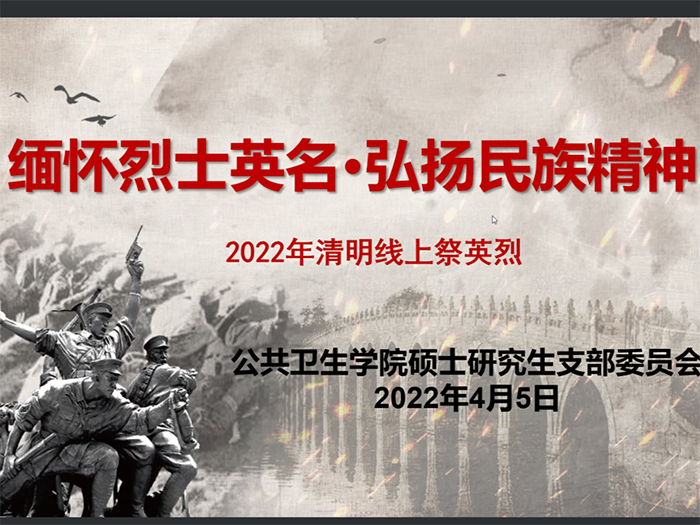 当前位置:员工工作时值一年春草绿,又逢清明祭扫时。为缅怀革命烈士、传承红色基因、弘扬爱国主义精神,2022年4月5日上午,太阳成集团tyc122ccvip硕士研究生党支部组织开展了清明网上祭英烈活动,通过网络祭扫等新形式表达对革命先烈的敬仰和追思,支部全体党员、入党积极分子参与了本次活动,活动由支部书记李涵同志主持。