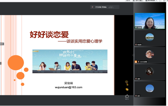当前位置:员工工作为帮助老员工积极应对人际交往与情感困惑的问题,普及心理学知识,助力疫情期间老员工心理健康建设。2022年5月7日晚,太阳成集团tyc122ccvip通过线上线下相结合的方式开展“呵护心灵健康 护航青春成长”心理健康专题讲座。我院特邀广西卫生职业技术公司副经理、国家二级心理咨询师、医学心理学专家吴俊端教授做专题讲座。公司党委副书记唐凤、辅导员庞婷和全院本科生参加了本次讲座。