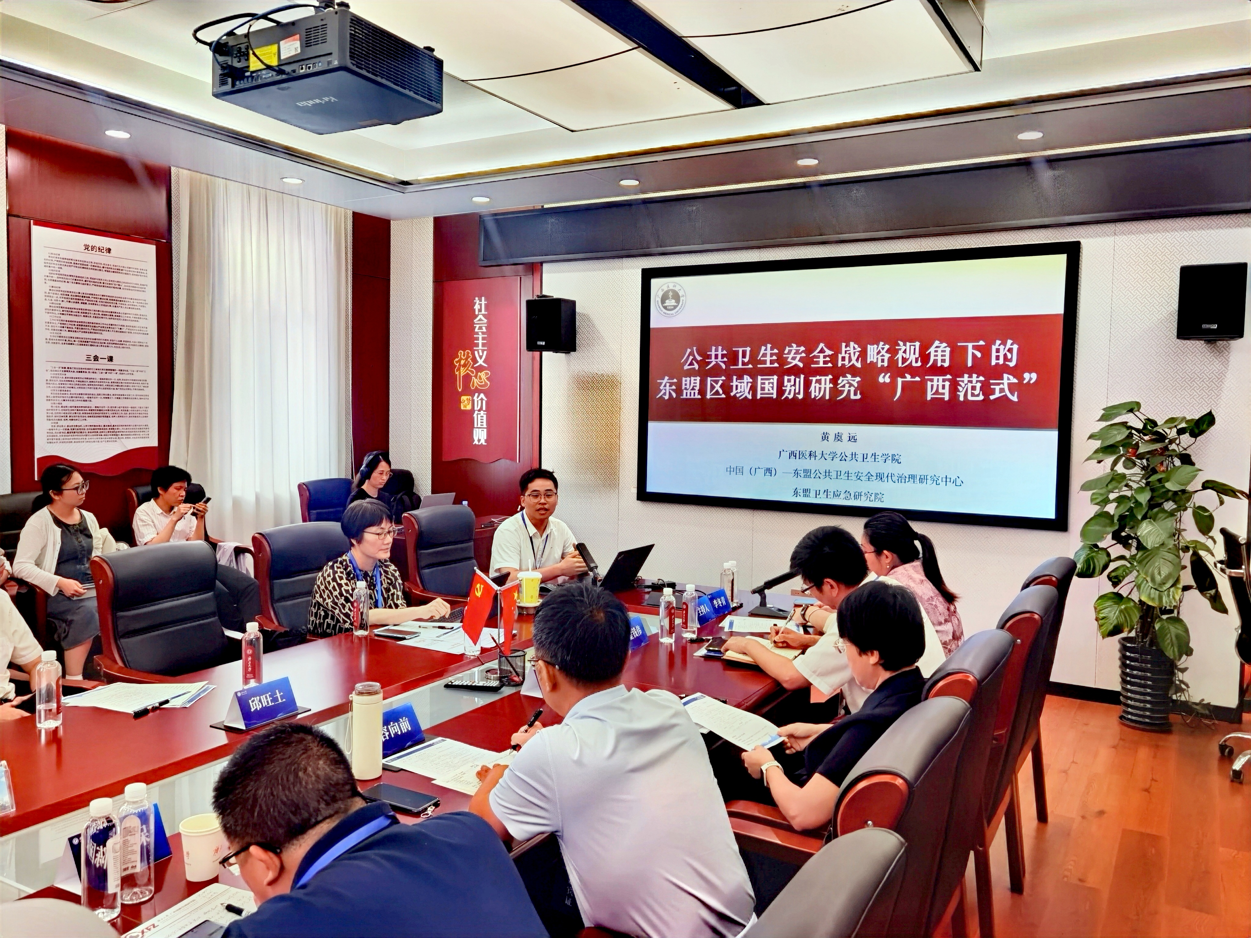 在随后举办的首届东盟区域国别研究联盟论坛上,与会专家围绕“东盟区域国别研究的经验特色”“国别研究专题探索”“中国—东盟合作与发展”等议题展开了深入研讨。论坛气氛热烈,观点纷呈。其中,中心代表黄虞远博士在“东盟区域国别研究经验特色”分论坛作主旨发言,以《公共卫生安全战略视角下的东盟区域国别研究“广西范式”》为题,系统介绍了中心在推动中国—东盟公共卫生安全现代治理研究领域的理论探索、实践路径及未来发展规划,展示了独具广西特色的研究范式。