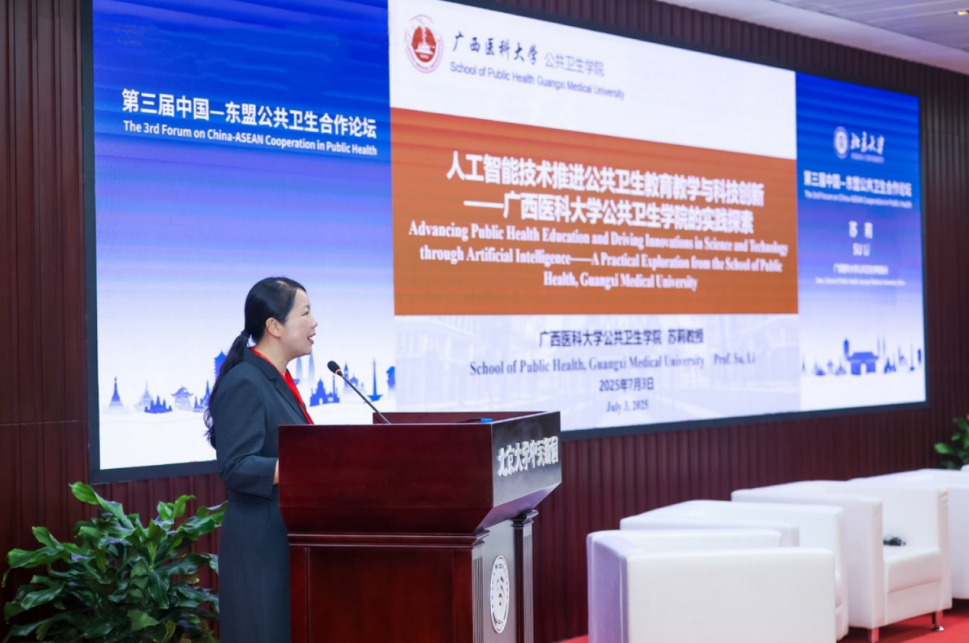 本届论坛由北京大学主办,以“人工智能引领全球公共卫生发展”为主题,汇聚来自中国与东盟高校、科研机构及国际组织的百余位专家学者,共同探讨AI技术赋能区域公共卫生治理的创新路径与合作前景。作为中国—东盟公共卫生科技合作中心的分中心成员,公司积极参与论坛交流。7月3日,苏莉在主论坛作题为《人工智能赋能公共卫生公司产品与科技创新——太阳成集团tyc122ccvip的实践探索》的主旨报告,系统介绍了公司在AI技术应用方面的创新实践。唐咸艳在“数智妇幼健康发展”分论坛作专题报告,探讨了AI技术在促进疫苗接种公平性方面的应用前景。