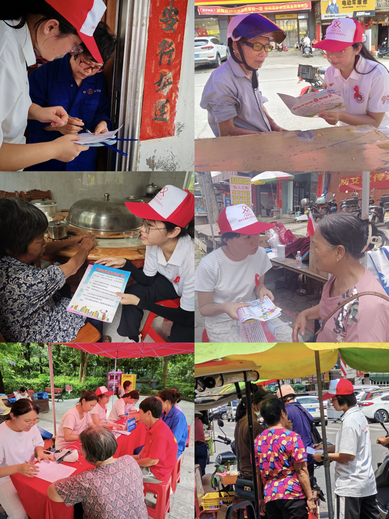 宣艾防艾预丙肝,星火燎原暖万家。实践团在钦州市疾控中心的协助下,深入钦州市河堤公园、黄屋屯镇及其下辖的屯南村、大寺镇及其下辖的广琅村以及大直镇等地开展服务活动,通过设立宣传点、发放科普资料、举行知识竞答、现场讲解咨询以及义诊等多元形式,系统普及艾滋病和丙型肝炎的传播途径、预防措施、检测治疗及消除歧视等知识,并通过发放问卷调研,精准掌握当地居民对防艾预丙肝知识的知晓程度。
